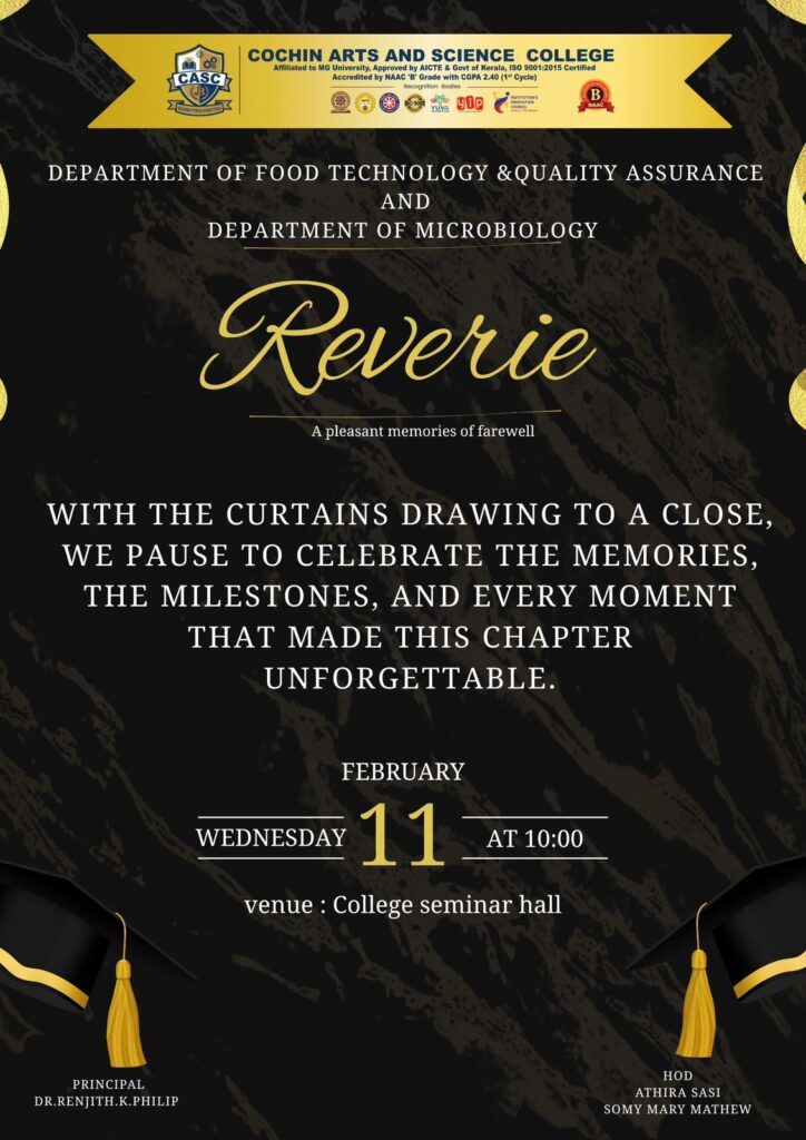 The Departments of Food Technology & Quality Assurance and Microbiology organized Reverie, a heartfelt farewell programme to celebrate the journey and achievements of the outgoing batch.The event marked the culmination of years filled with learning, growth, milestones, and cherished memories.Faculty members and students came together to reflect on shared experiences and to honor the contributions […]