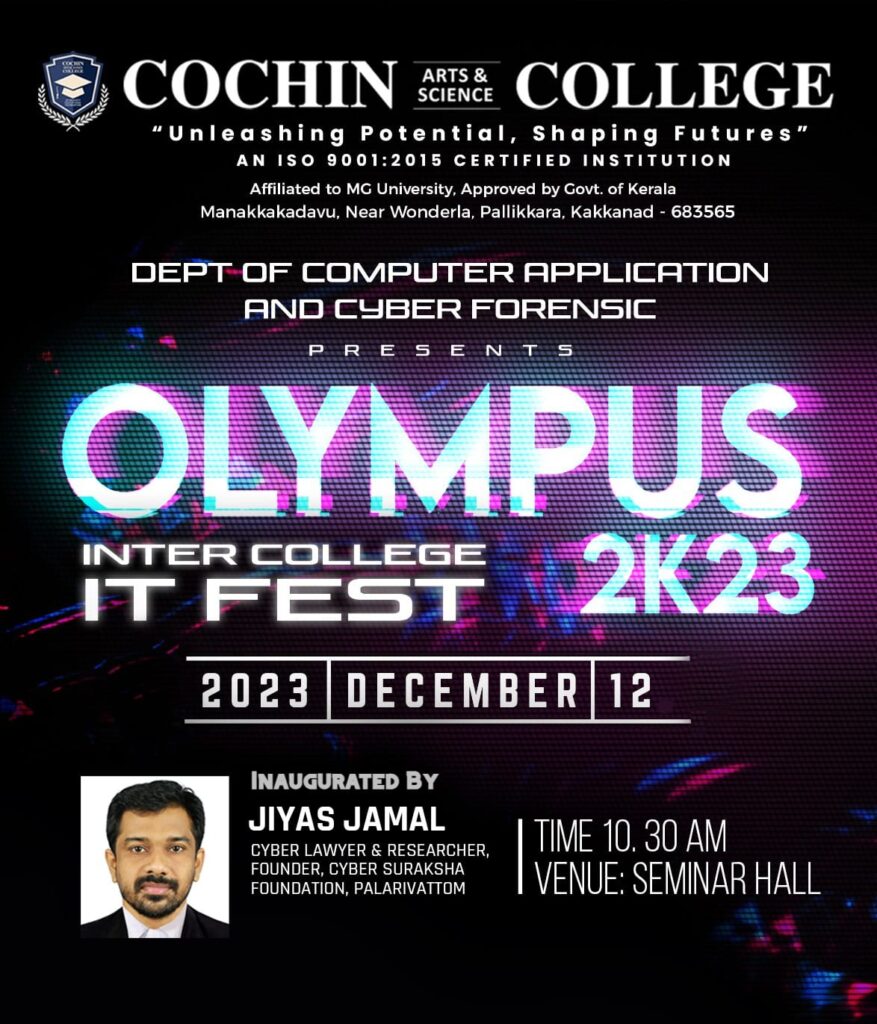 Olympus 23, the Inter-College IT Fest hosted by the Department of Computer Application and Cyber Forensics at Cochin Arts and Science College,..
