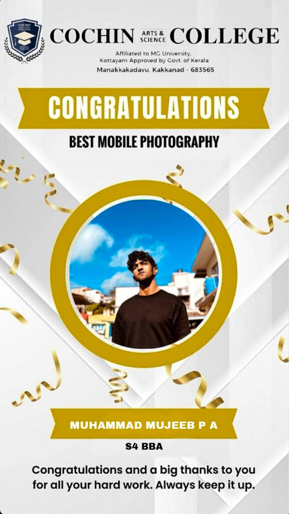 Mujeeb student of Management studies won first prize in mobile photography conducted by MES college, Marampally.