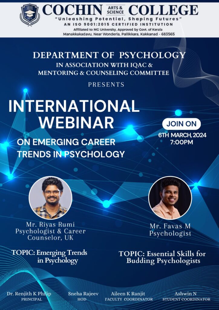 The Department of Psychology at Cochin Arts and Science College in association with IQAC and Mentoring and Counseling Committe…