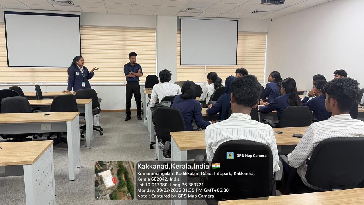 The Department of Commerce organized an internship programme for S6 students at Invisor Consulting Services Pvt. Ltd., Infopark, Kakkanad, on 09 January 2026, from 10:00 AM to 1:30 PM. The programme was designed to bridge the gap between academic learning and industry practice by exposing students to real-world corporate and consulting environments.The interaction with industry professionals helped students understand current market practices, expectations of employers, and emerging trends in the consulting sector. Overall, the internship programme was informative and impactful, contributing significantly to the practical skill development and career orientation of commerce students heading