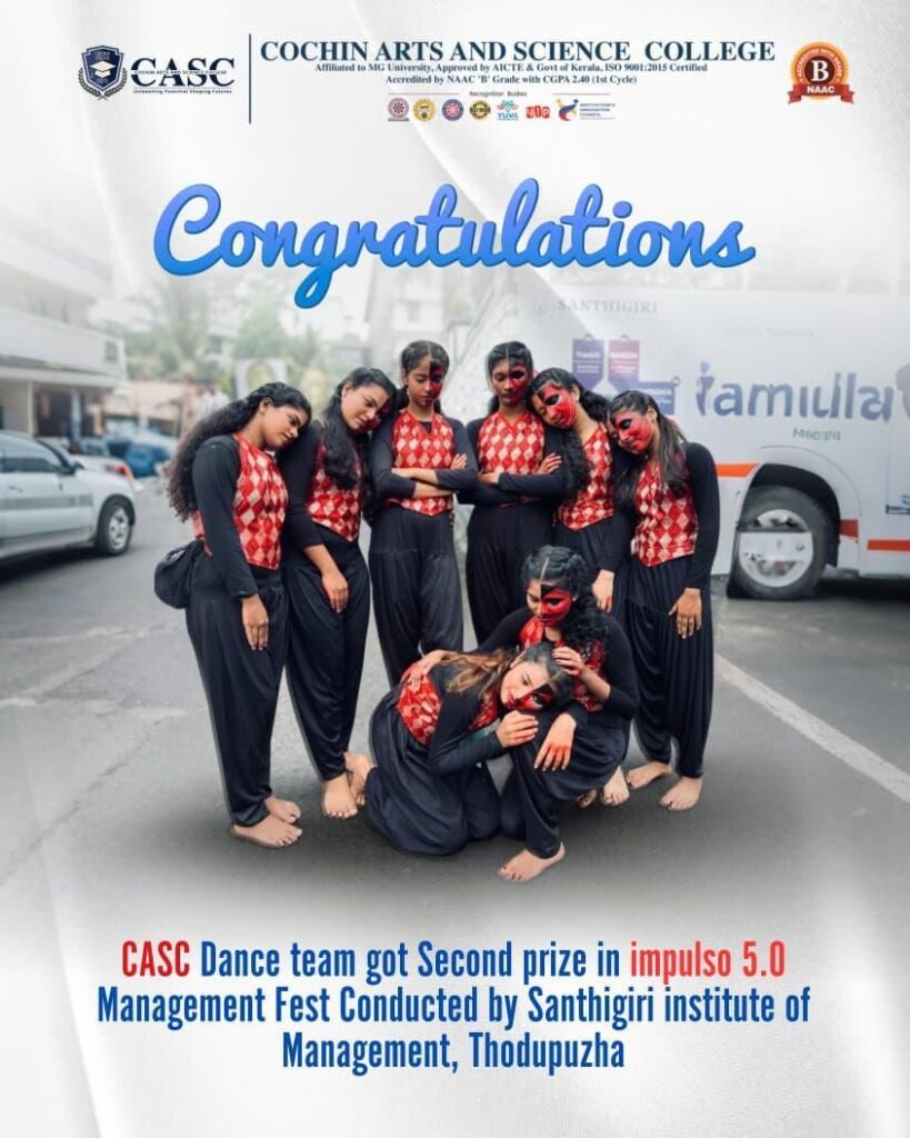 Cochin Arts and Science College celebrates Athul Krishnan T S from the S5 Psychology Department. Athul has been awarded the prestigious title of “Kalaprathibha” (Artistic Talent/Star of Arts) at the CASCian Youth Festival 2025. The entire institution offers heartfelt congratulations on this major artistic achievement.