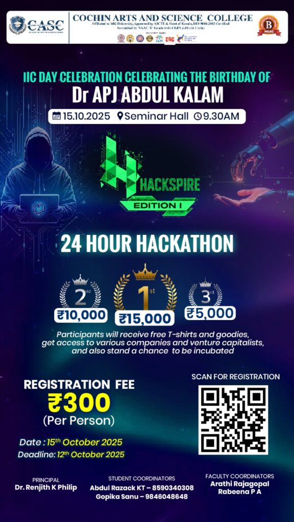HackSpire: Edition I is the ultimate 24-hour innovation showcase, challenging the brightest minds to build functional, high-impact projects from scratch. This hackathon, celebrating Dr. APJ Abdul Kalam, promotes a culture of technical excellence, rapid prototyping, and collaborative problem-solving. It’s a key platform to impress venture capitalists and industry leaders, offering direct access for the best […]