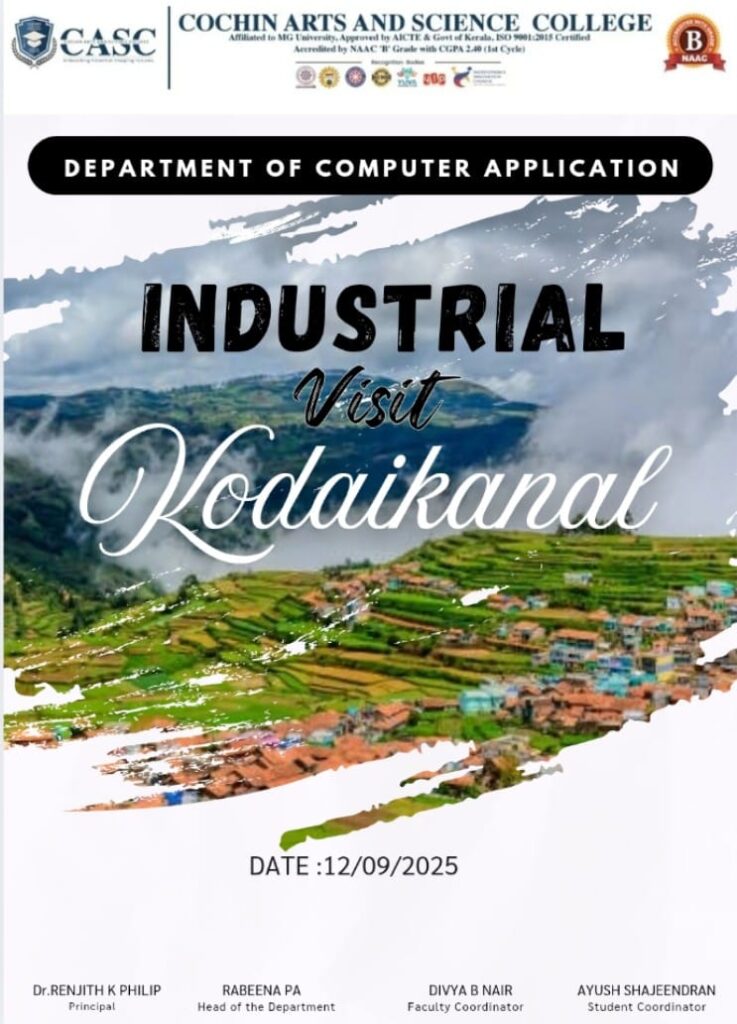 The Department of Computer Application is organizing an Industrial Visit to Kodaikanal on 12th September 2025. This visit is designed to provide students with valuable industry exposure, bridging the gap between academic learning and real-world applications. It will help participants gain insights into modern industrial practices, emerging technologies, and the practical aspects of computer applications. Alongside […]