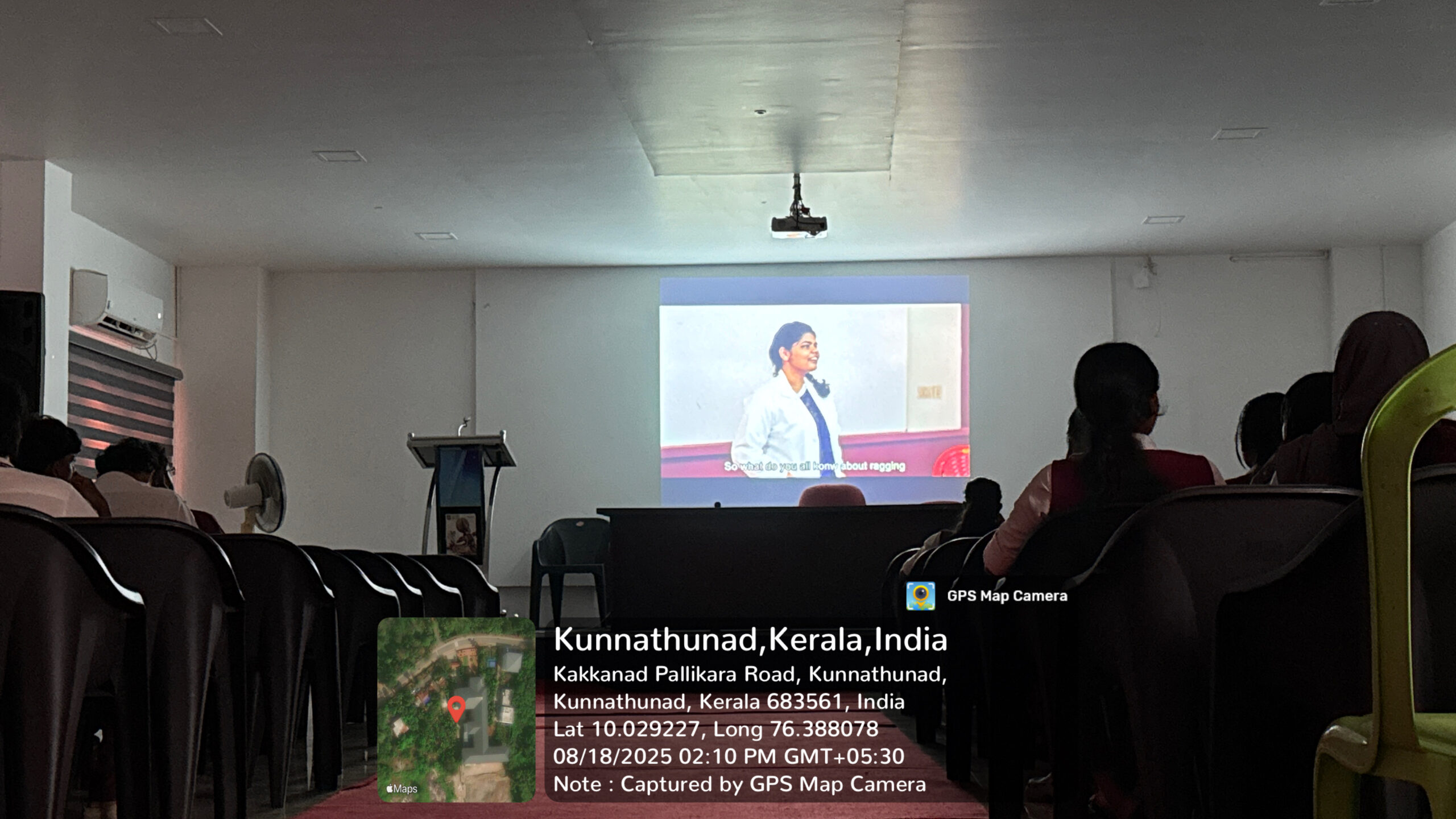 Mr. P K Salim, Sub Inspector of Police, Kunnathunadu Police Station served as the chief guest and he addressed the students on the importance of maintaining a ragging-free campus and emphasized legal consequences and preventive measures against ragging.